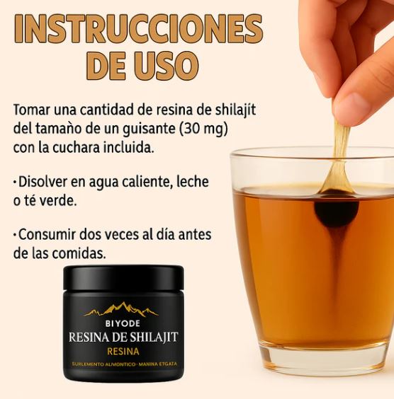 Disolver una pequeña porción de resina en agua tibia o caliente y consumir en la mañana antes de la primera comida.